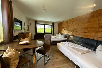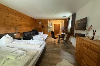 Herzlich Willkommen in unserer Ferienwohnung "Zirbenstüberl"! Gerne erwarten wir Sie in unserer urig gestalteten Ferienwohnung in Inzell. Mit rund 36 m² Wohnfläche ist unsere Komfort-Ferienwohnung ideal für 2 Personen, aber die sehr bequeme Ledercouchecke bietet eine Bettfunktion für 1 Kind oder einen weiteren Erwachsenen. Genießen Sie erholsame Tage bei uns in Inzell. Zu den weiteren Annehmlichkeiten gehören kostenloses WLAN, ein eigener Tiefgaragen-Stellplatz, ein abschließbarer Ski- oder Fahrradunterstellraum und ein Wasch- und Trockenraum. Zu einem leckeren Frühstück lädt das benachbarte "Kur-Cafe" ein, wenn Sie es nicht selbst zubereiten möchten.