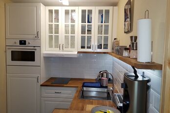 Die komplett ausgestattete Küche bietet alles, was Sie benötigen: Geschirrspüler, Herd, Mikrowelle mit Grillfunktion, Wasserkocher, Toaster und Kapsel-Kaffeemaschine.
