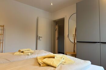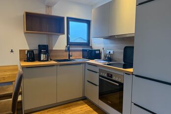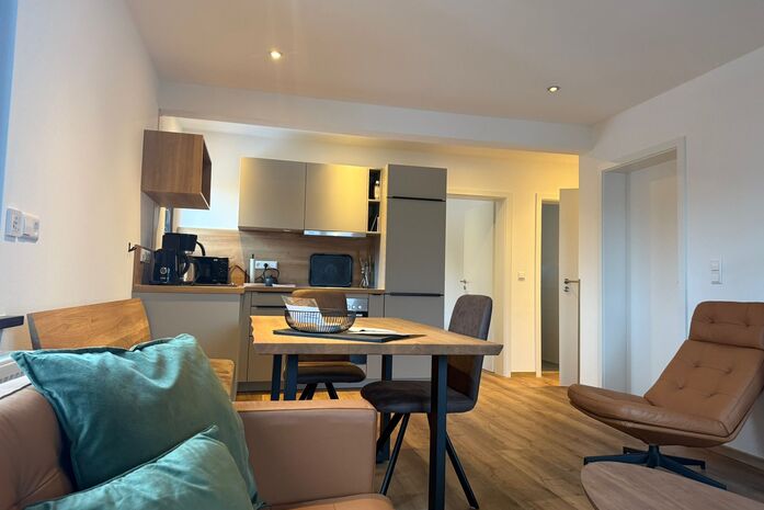Gemütliche, modern eingerichtete Ferienwohnung mit Balkon und Gartenblick Diese kleine, aber feine, neu eingerichtete Wohnung bietet modernen Komfort und alles, was Sie für einen erholsamen Aufenthalt brauchen.Die gut ausgestattete Küche lädt zum Kochen ein, das Schlafzimmer verfügt über ein bequemes Doppelbett und einen großen Kleiderschrank. Im modernen Tageslichtbad starten Sie entspannt in den Tag. Das geschmackvoll eingerichtete Wohnzimmer bietet bei Bedarf ein zusätzliches Klappbett - ideal, wenn Sie zu dritt reisen. Genießen Sie außerdem Ihren eigenen Balkon mit schönem Blick ins Grüne - perfekt für ein gemütliches Frühstück oder ein Glas Wein am Abend.